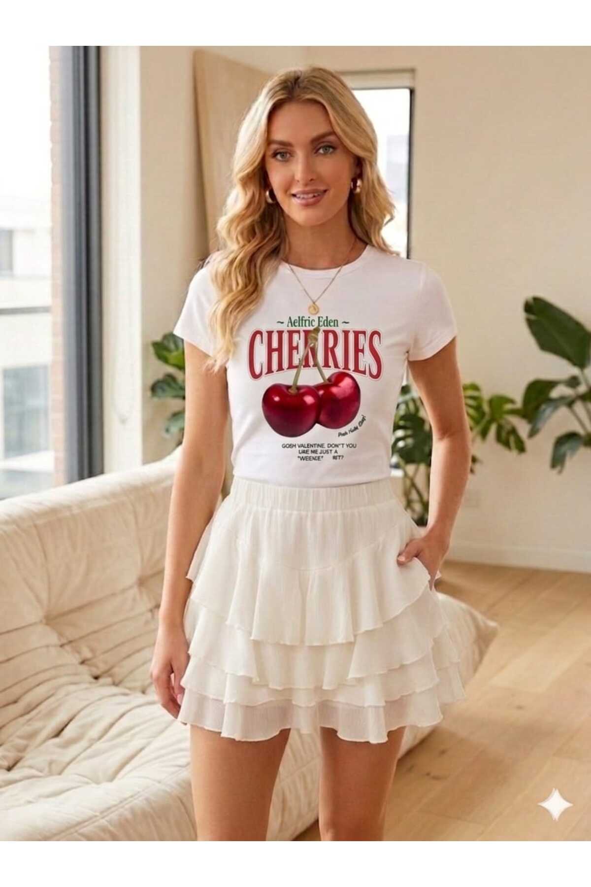 * Canlı kiraz baskısıyla yazın enerjisini yansıtan tasarım.; * Şortlu etek ve kısa kollu tişörtten oluşan 2'li takım.; * Rahat ve hareket özgürlüğü sunan kesim.; * Günlük kullanım için ideal, her ortama uyum sağlayan stil.; * Yaz sezonu için hafif ve serinletici kumaş.; * Genç ve dinamik bir görünüm için ideal.; * Kiraz deseniyle dikkat çeken, enerjik bir görünüm sunar.;