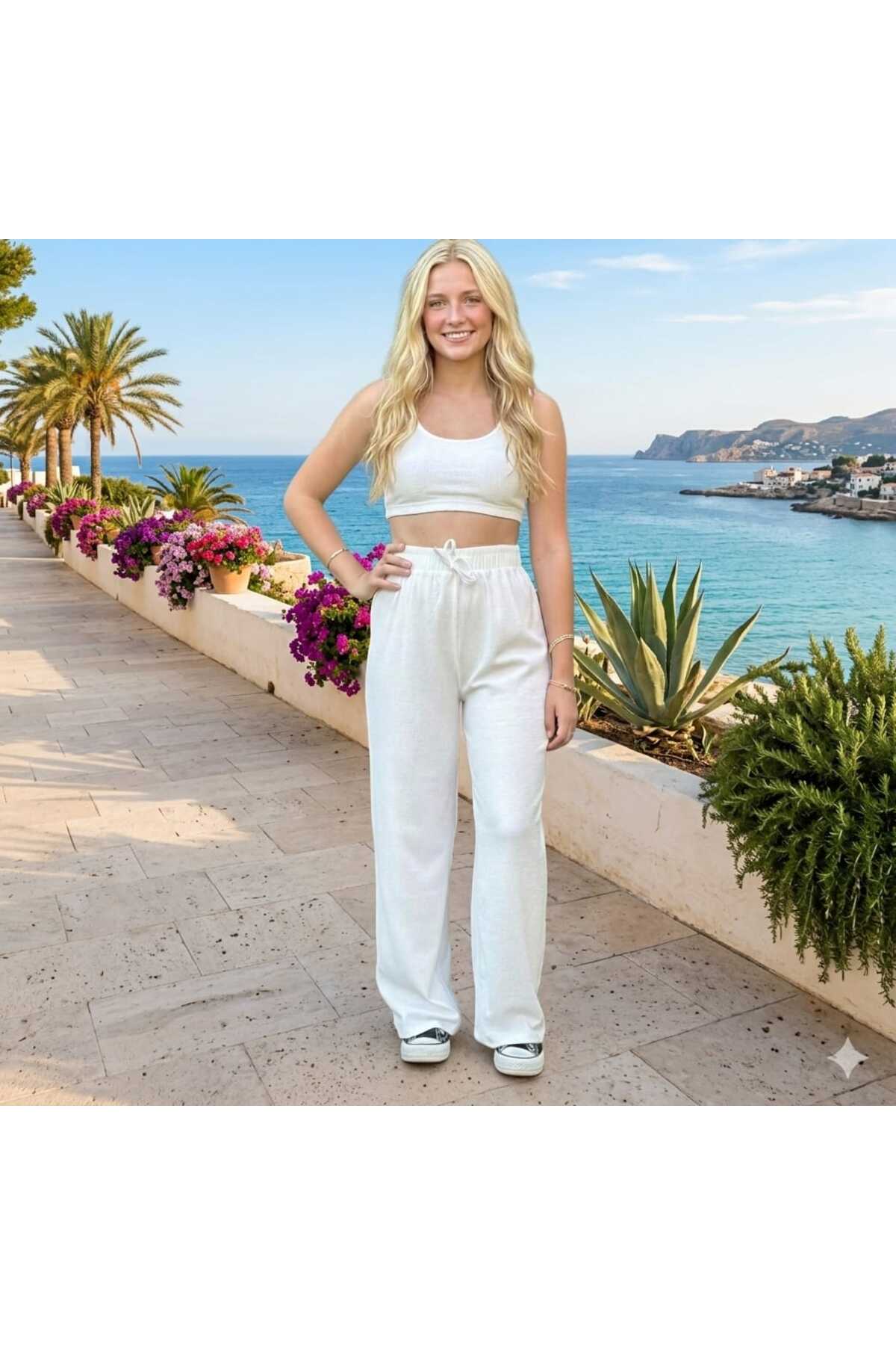 - Rahat ve şık bir görünüm için basic jogger silueti.; - Bağcıklı bel detayı ile kişisel uyum ve stil yaratma imkanı.; - İnce ve hafif keten karışımlı müslin kumaş, tüm sezonlarda konfor sunar.; - Uzun boy tasarımı ile modern ve zarif bir siluet oluşturur.; - Astarsız yapısı sayesinde hafiflik ve nefes alabilirlik sağlar.; - Tüm sezonlar için uygun, zamansız bir parça.;